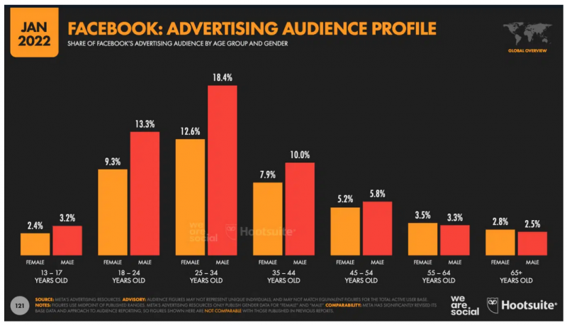 对于定向广告,主要群体是18-34岁的男性,同年龄段的女性稍稍落后。