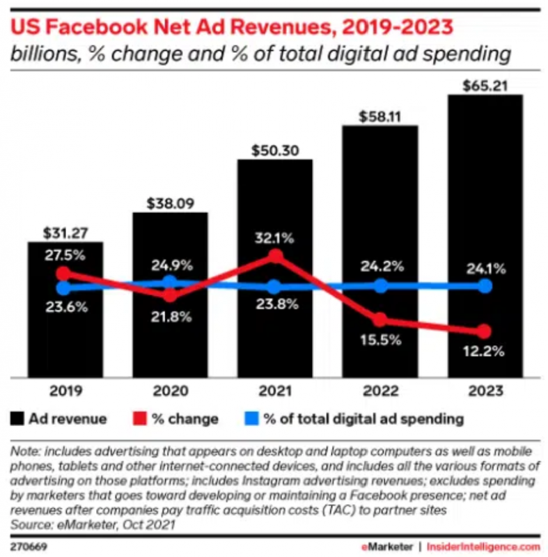 预计2022年广告主将在 Facebook上投资超过500亿美元广告费