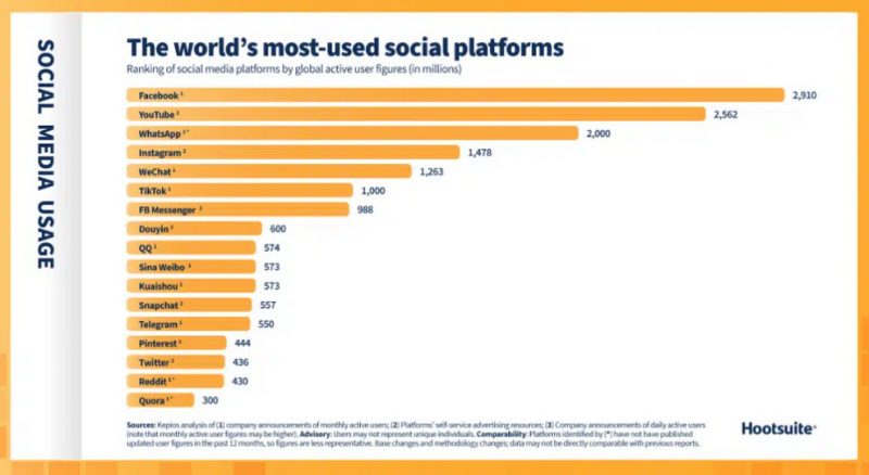Facebook 仍然是世界上最常用的社交平台,击败 YouTube、WhatsApp 和 Instagram,位居第一。